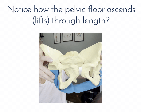 From the moment your foot lands until you reach mid-stance, your body is absorbing force. This loading phase occurs through internal rotation of the pelvis and hip. Once you move past mid-stance, the body transitions into external rotation, which helps propel you forward. This internal-to-external rotation sequence is essential for efficient running mechanics. If you look at studies measuring pelvic floor muscle activity during running (1), you can clearly see two important patterns. First, pelvic floor activity stays elevated above baseline throughout the entire run. Like any other muscle group, the pelvic floor experiences progressive load and can fatigue. This means that if you notice pelvic floor symptoms toward the end of your run, it may simply reflect a need to build more strength, endurance, and capacity in that system. The second pattern is even more interesting (to me at least). Pelvic floor muscles actually show pre-activation before the foot even hits the ground. If you look at the graph of muscle activity, the pelvic floor would remain above baseline (the horizontal orange line) the entire time. Activity is lowest at toe-off, but immediately after toe-off—before the opposite foot even strikes the ground—the activity begins increasing again. It then reaches its maximum activity at mid-stance, when the body is in its deepest internal rotation and producing the greatest ground force. Why Does This Pre-Activation Happen? My hypothesis and professional opinion is that rotation plays a major role. As you move from toe-off into the next step, your body begins transitioning from maximum external rotation toward internal rotation on the stance leg. That rotational movement starts before the foot ever contacts the ground. The pelvic floor naturally lifts during internal rotation! This lift doesn’t come from consciously squeezing the muscles. It’s not a Kegel. Instead, it occurs because internal rotation creates length in the back portion of the pelvic floor, and that length produces a natural lift. This is why the ability to find length in the backside is so important. When the pelvic floor can’t lengthen especially in the back, it can’t respond properly to the demands of running. Using the Toe Touch and Toe Touch to Squat Assess Posterior LengthWe can return to the toe touch test from yesterday’s email to evaluate backside length as well. If you cannot touch your toes at all, that’s often a sign that you struggle to shift your center of mass backward and access length through the back of the ribcage and pelvis. And we can take it a step further. The Toe Touch to Squat TestFrom the toe touch position: